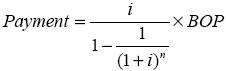 The calculation of the payment amount is based on the present value of an annuity formula. Specifically, the payment is given by: