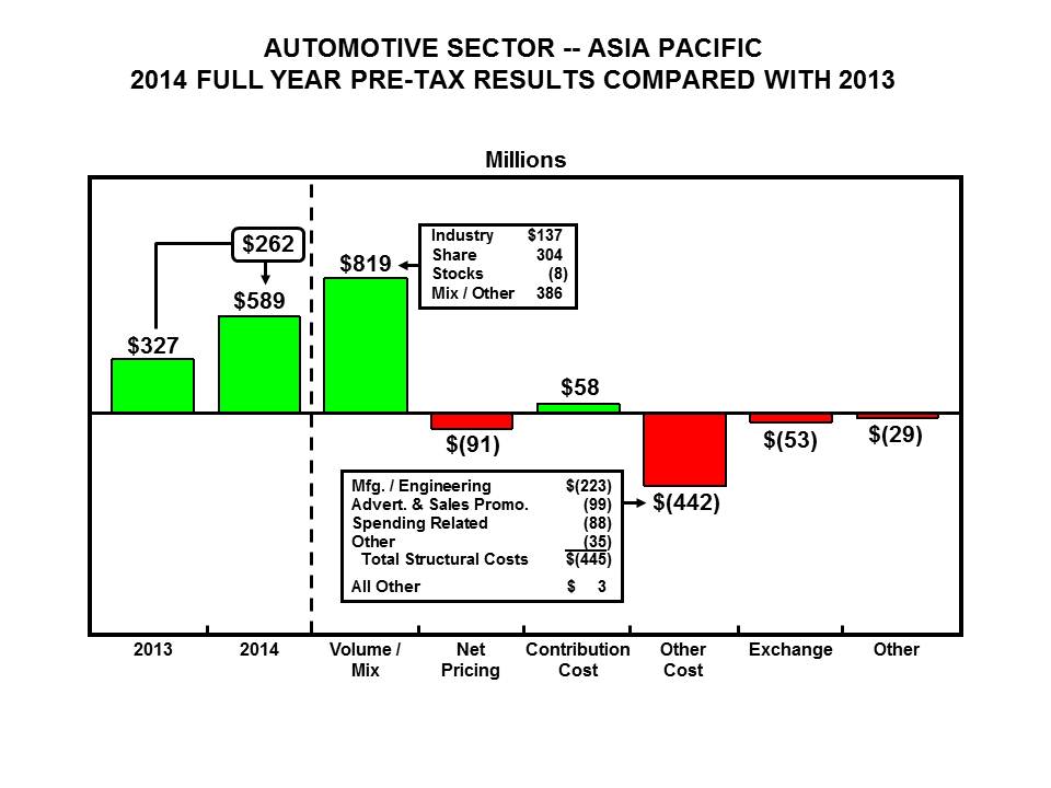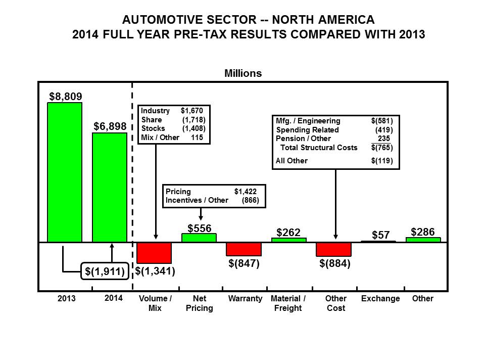 Net income attributable to Ford Motor Company of $52 million in the fourth quarter of 2014 includes favorable tax items of $176 million related to retroactive reinstatement of U.S. tax legislation in the Tax Increase Prevention Act of 2014.