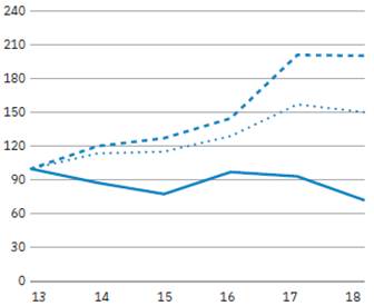 The following graphs compare the five- and ten-year cumulative total returns for IBM common stock with the comparable cumulative returns of certain Standard & Poors (S&P) indices. Due to the fact that IBM is a company included in the S&P 500 Stock Index, the SECs rules require the use of that index for the required five-year graph. Under those rules, the second index used for comparison may be a published industry or line-of-business index. The S&P Information Technology Index is such an index. IBM is also included in this index.