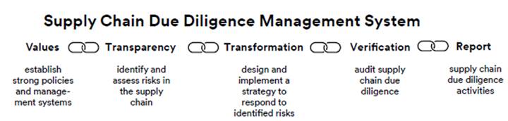 The Company therefore conducted due diligence on the source and chain of custody of Necessary 3TG as described below, using the following due diligence management system:
