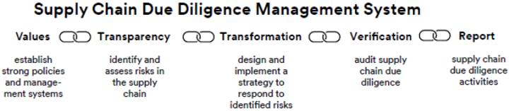 The Company therefore conducted due diligence on the source and chain of custody of Necessary 3TG as described below, using the following due diligence management system: