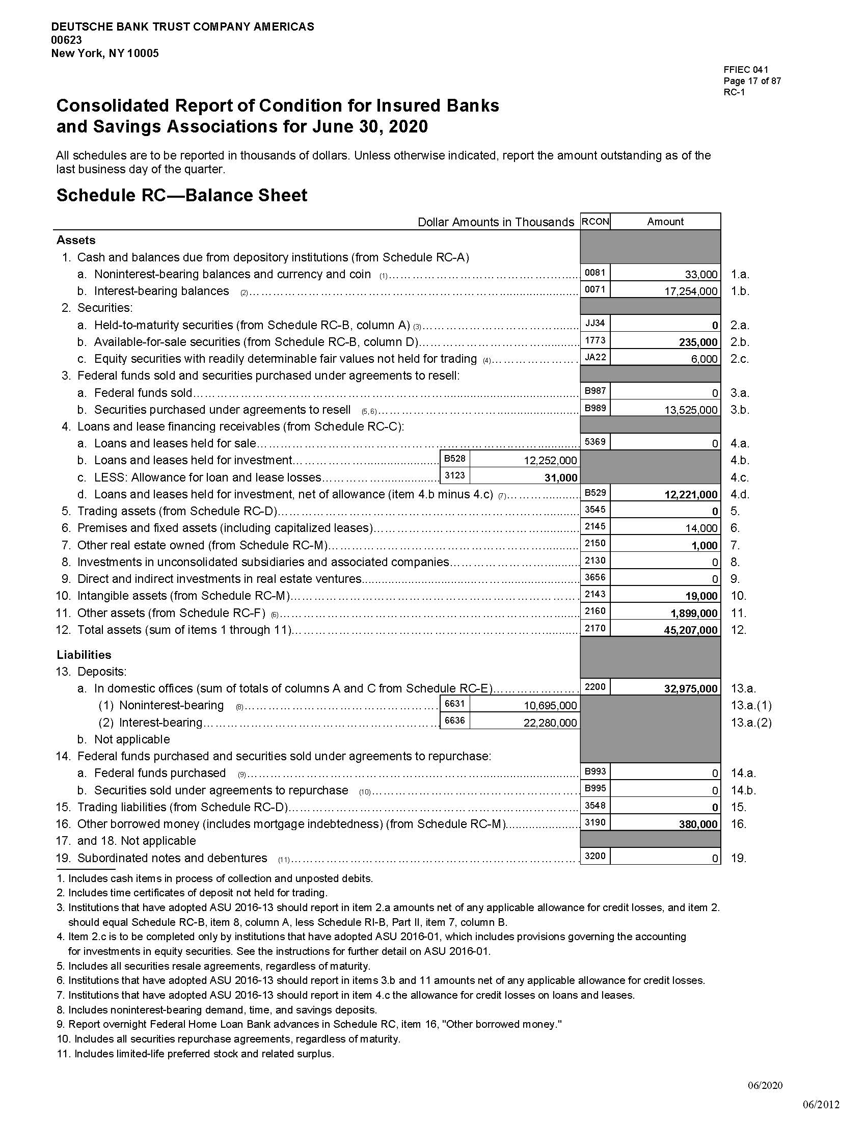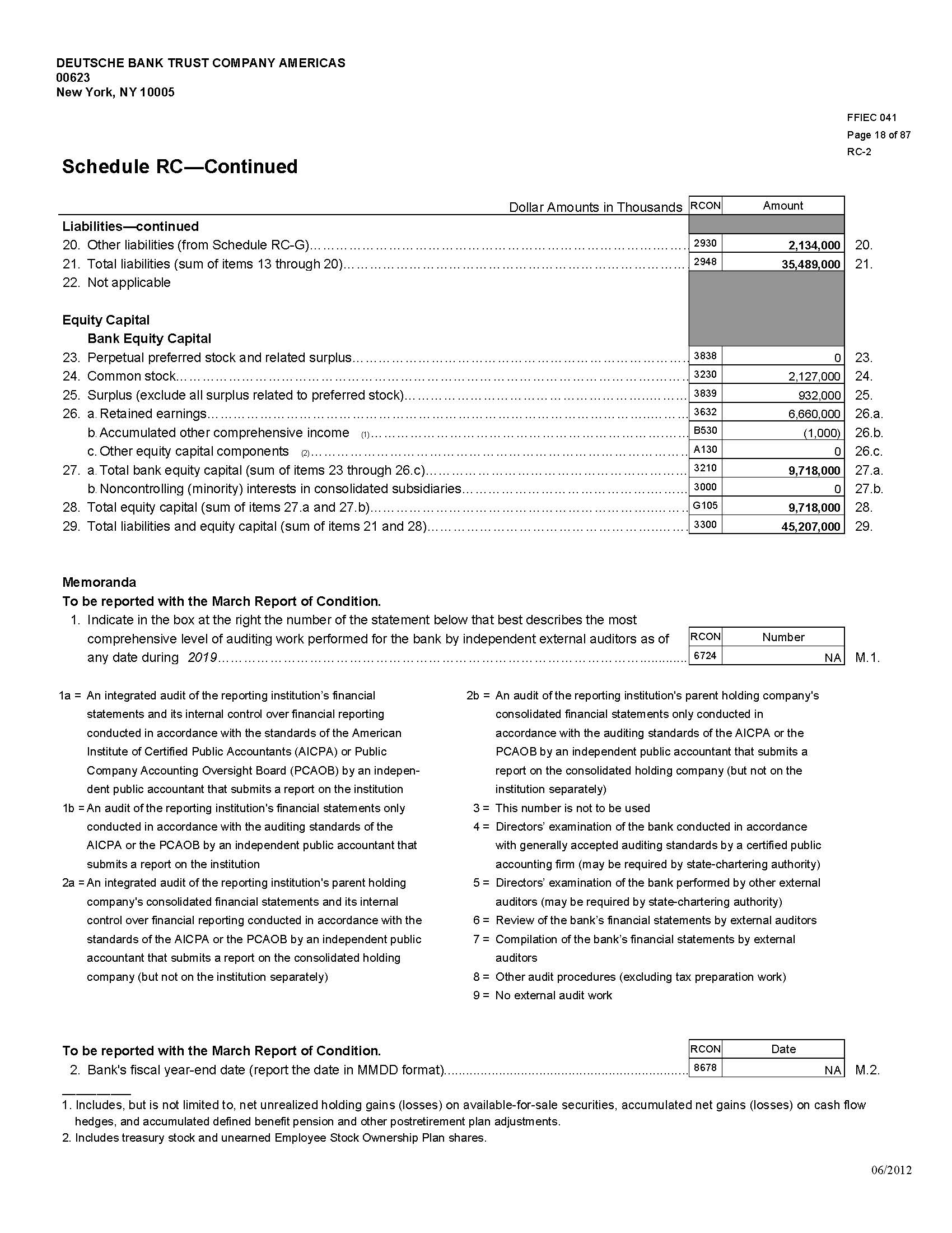 DEUTSCHE BANK TRUST COMPANY AMERICAS
