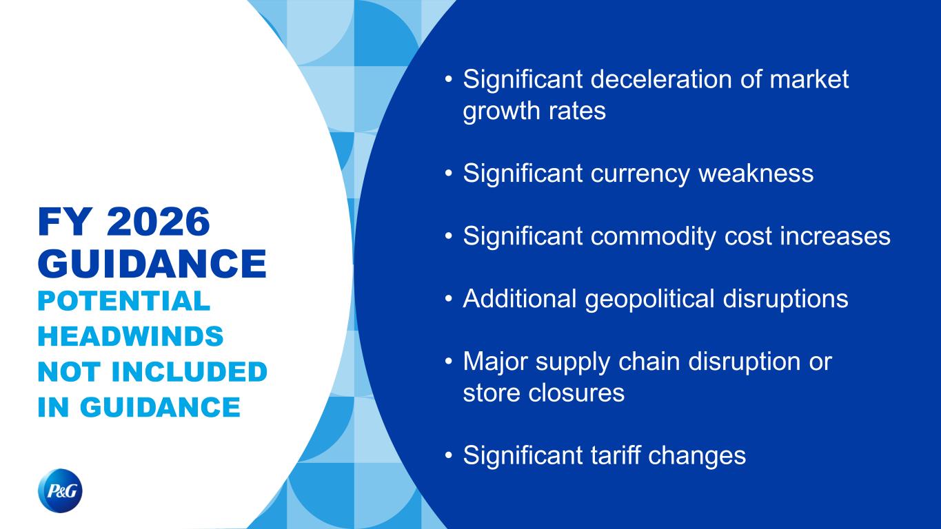 FY 2026 GUIDANCE POTENTIAL HEADWINDS NOT INCLUDED IN GUIDANCE • Significant deceleration of market growth rates • Significant currency weakness • Significant commodity cost increases • Additional geopolitical disruptions • Major supply chain disruption or store closures • Significant tariff changes