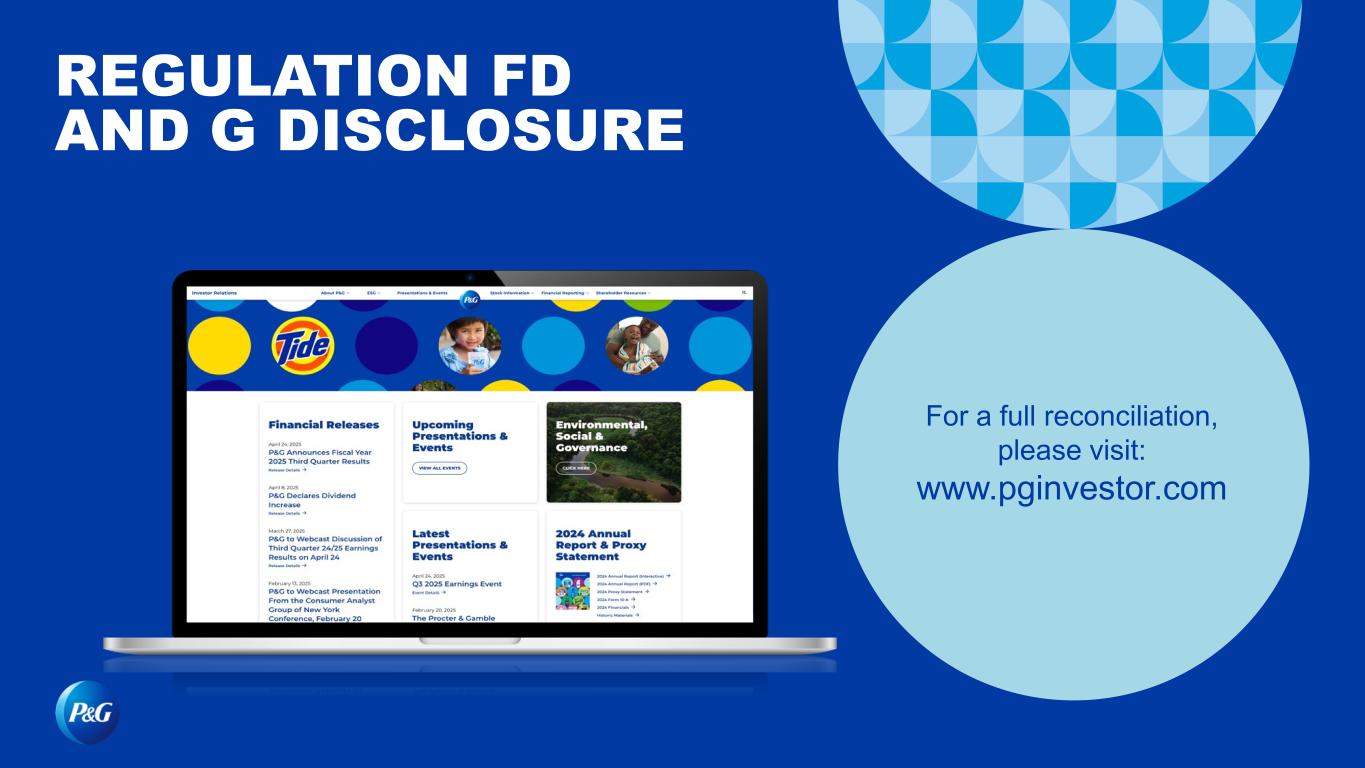 For a full reconciliation, please visit: www.pginvestor.com REGULATION FD AND G DISCLOSURE