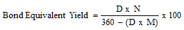where “D” refers to the applicable per annum rate for Treasury Bills quoted on a bank discount basis, “N” refers to 365 or 366, as the case may be, and “M” refers to the actual number of days in the interest period for which interest is being calculated.