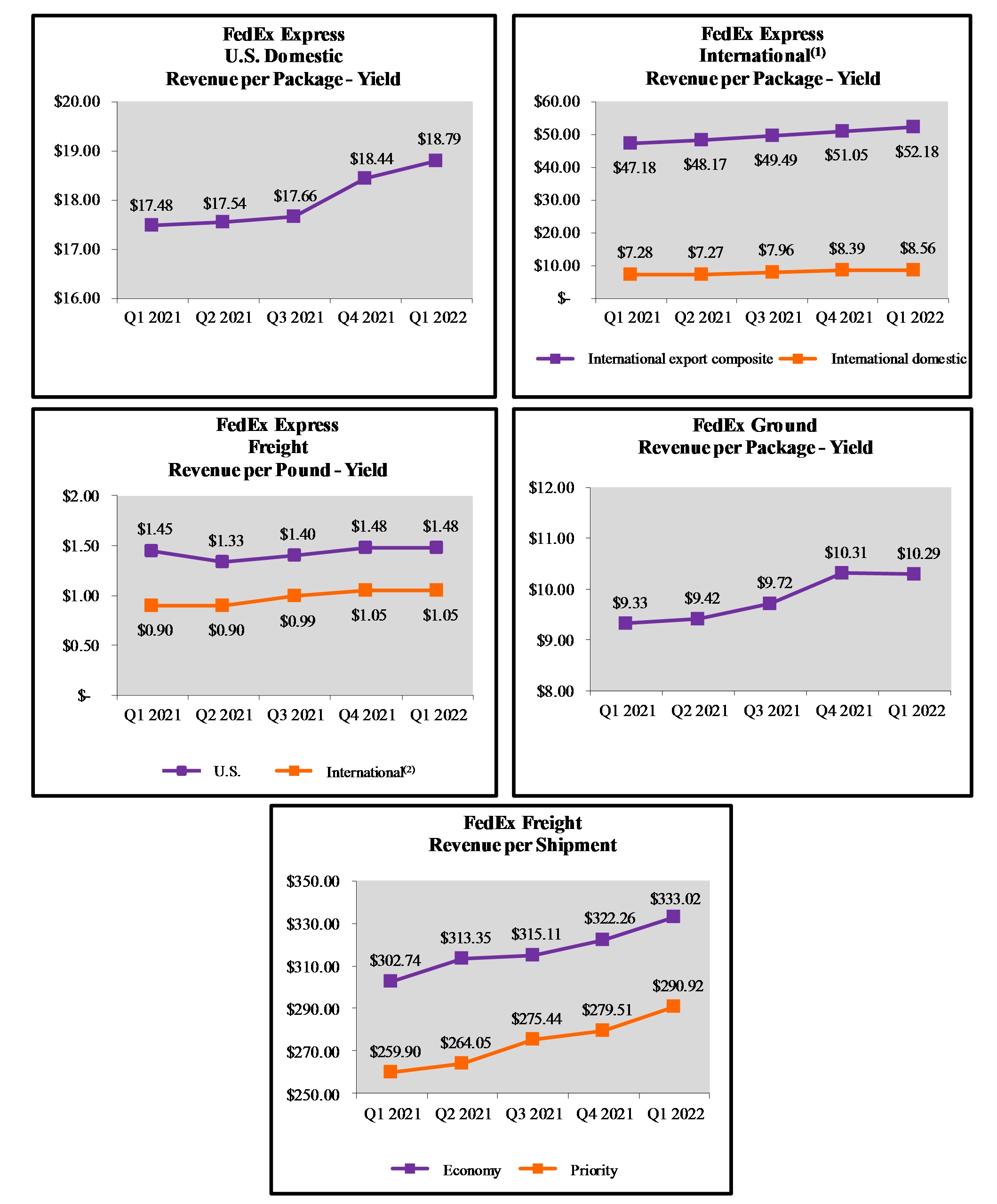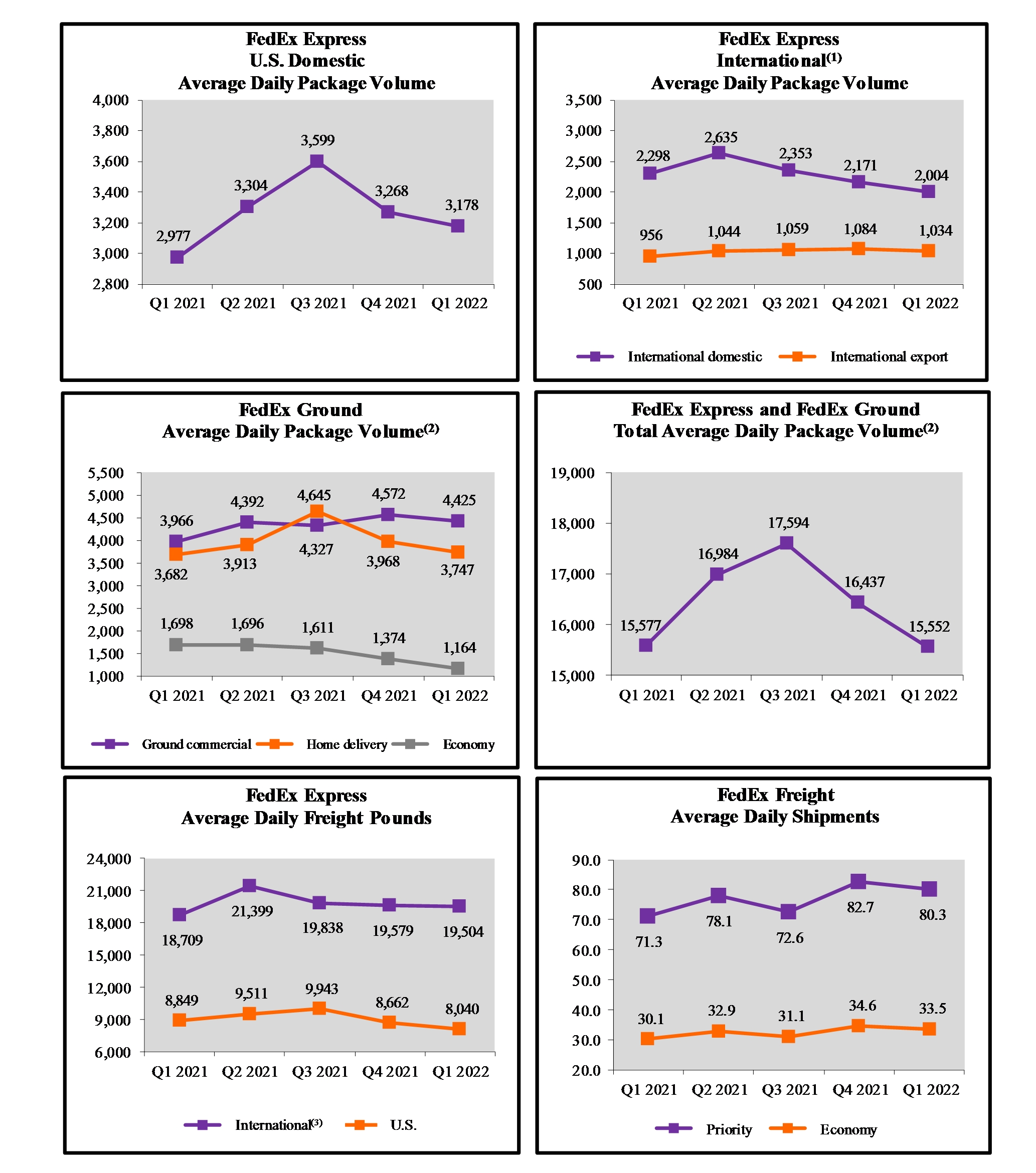 Difficulties in attracting and retaining employees by FedEx and our contracted service providers and increases in labor and purchased transportation costs have materially adversely impacted our business and results of operations. Labor market challenges experienced in 2021 intensified during the first quarter of 2022 and drove increased operating expenses as the constrained labor market impacted the availability and cost of labor resulting in network inefficiencies, higher wage rates and purchased transportation costs, and lower service levels. See “Item 2. Management’s Discussion and Analysis of Results of Operations and Financial Condition” of this report for more information. The extent and duration of the impact of these labor market challenges are subject to numerous factors, including the continuing impact of the COVID-19 pandemic, availability of qualified persons in the markets where we and our contracted service providers operate and unemployment levels within these markets, behavioral changes, prevailing wage rates and other benefits, health and other insurance costs, inflation, adoption of new or revised employment and labor laws and regulations (including increased minimum wage requirements) or government programs, safety levels of our operations, and our reputation within the labor market.