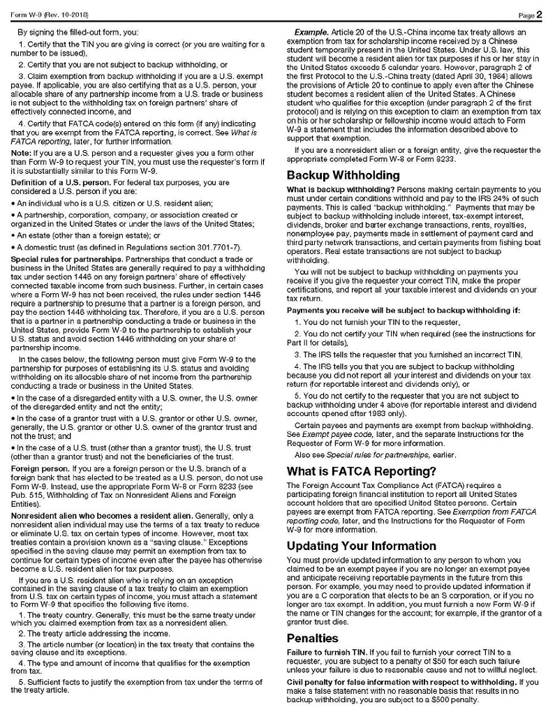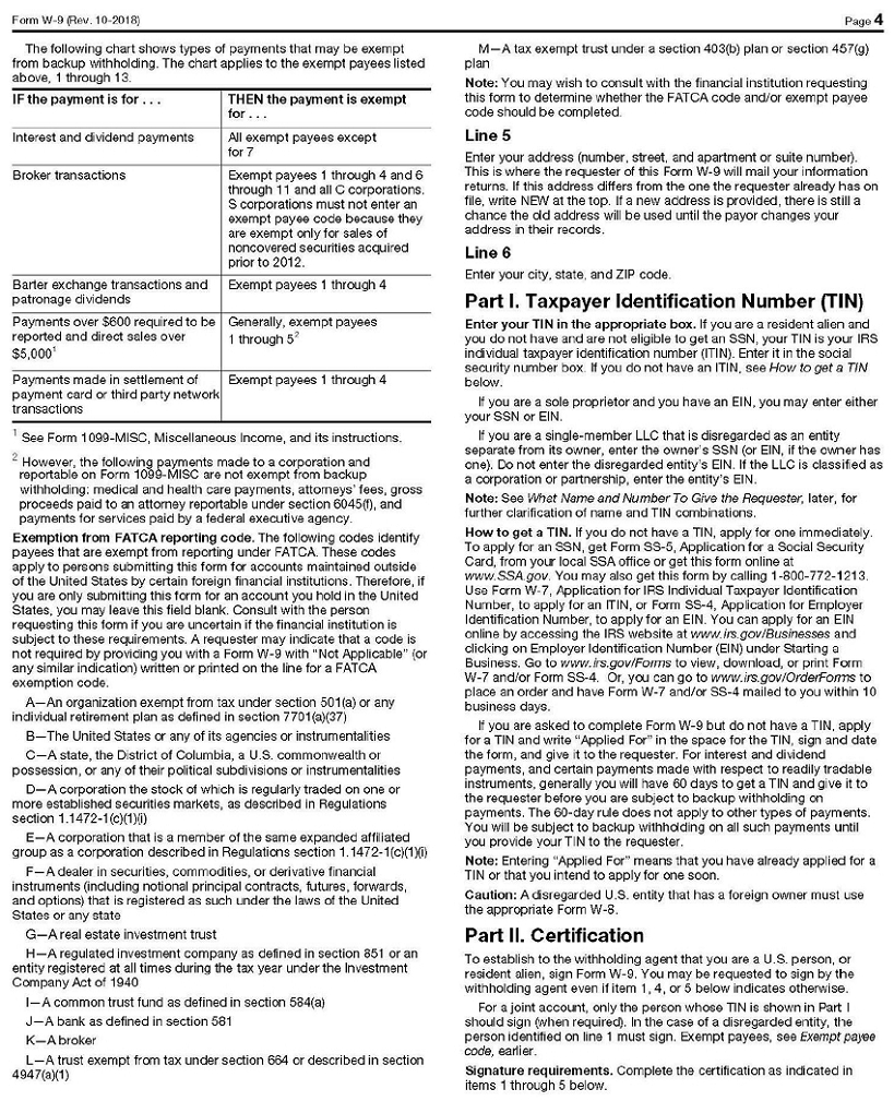 Under U.S. federal income tax law, a tendering holder whose Restricted Notes are accepted for exchange for Registered Notes may be subject to backup withholding on reportable payments made on the Registered Notes unless the holder provides the Exchange Agent, Issuer, or other payor with its correct taxpayer identification number (“TIN”) and certain other information on Internal Revenue Service (“IRS”) Form W-9, which is provided below, or otherwise establishes an exemption. If the Exchange Agent, Issuer or other payor is not provided with the correct TIN or an adequate basis for an exemption, a holder may be subject to a penalty imposed by the IRS, and backup withholding (currently, at a rate of 24%) may apply to any reportable payments on the Registered Notes made to such holder. Such reportable payments generally will be subject to information reporting, even if the Exchange Agent, Issuer or other payor is provided with a TIN. Backup withholding is not an additional tax. Rather, the U.S. federal income tax liability of a person subject to backup withholding will be reduced by the amount withheld. If withholding results in an overpayment of taxes, a refund may be obtained, provided that the required information is timely provided to the IRS.
