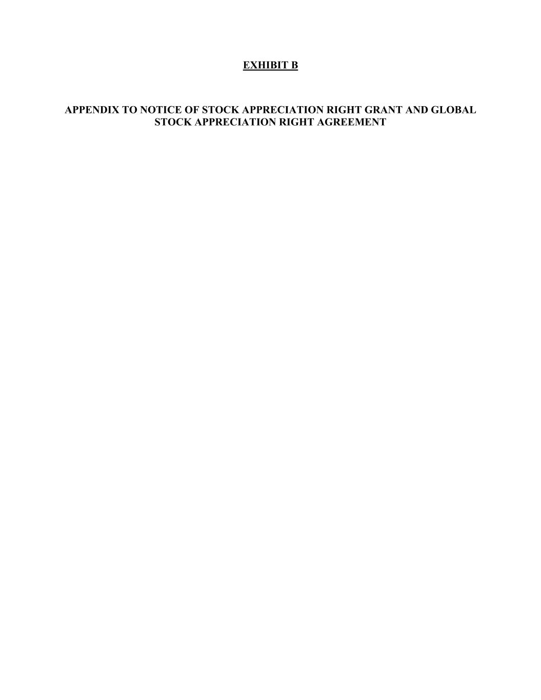 EXHIBIT B APPENDIX TO NOTICE OF STOCK APPRECIATION RIGHT GRANT AND GLOBAL STOCK APPRECIATION RIGHT AGREEMENT
