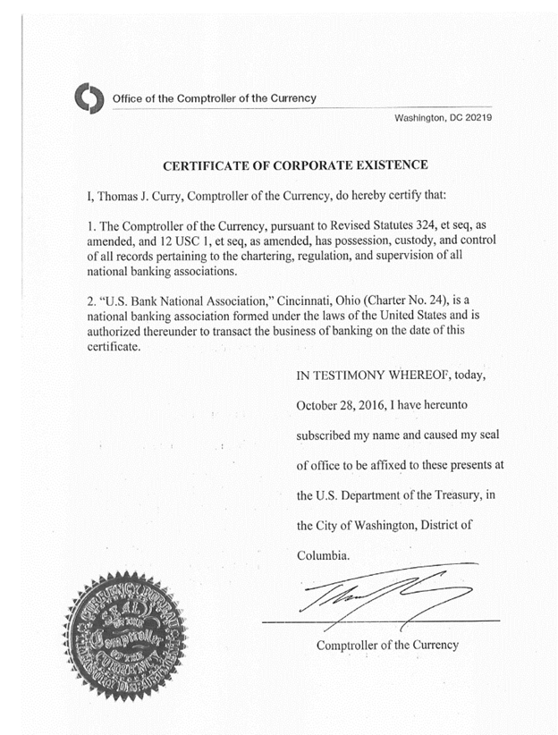 3. A copy of the certificate of authority of the Trustee to exercise corporate trust powers, attached as Exhibit 3.