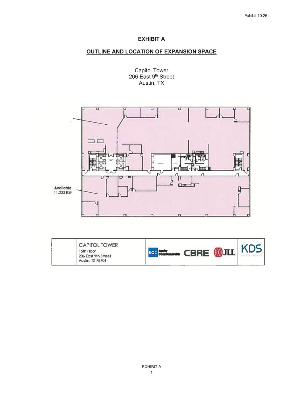 EXHIBIT A 1 EXHIBIT A OUTLINE AND LOCATION OF EXPANSION SPACE Capitol Tower 206 East 9th Street Austin, TX Exhibit 10.26