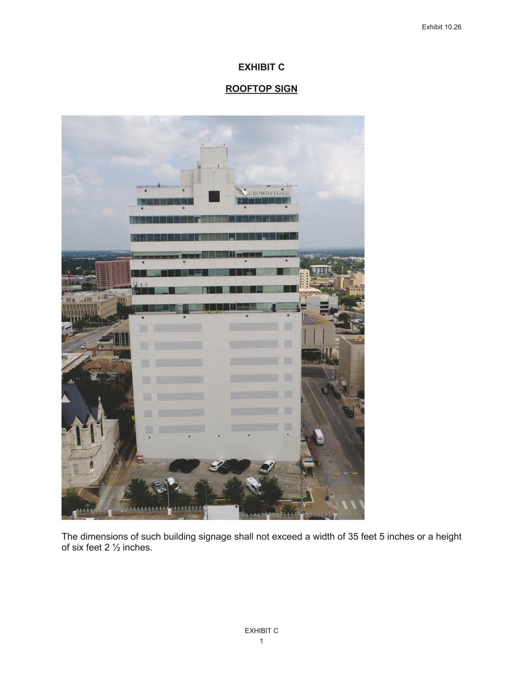 EXHIBIT C 1 EXHIBIT C ROOFTOP SIGN The dimensions of such building signage shall not exceed a width of 35 feet 5 inches or a height of six feet 2 ½ inches. Exhibit 10.26