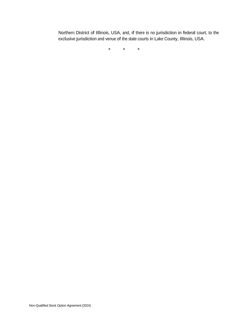 Non-Qualified Stock Option Agreement (2024) Northern District of Illinois, USA, and, if there is no jurisdiction in federal court, to the exclusive jurisdiction and venue of the state courts in Lake County, Illinois, USA. * * *