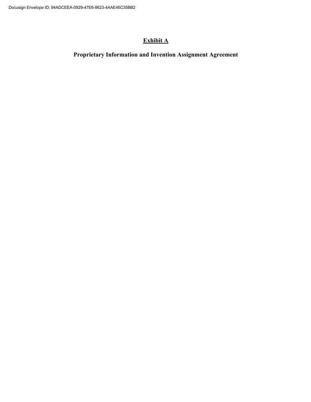 Exhibit A Proprietary Information and Invention Assignment Agreement Docusign Envelope ID: 94ADCEEA-0929-47E6-8623-4AAE46C35BB2