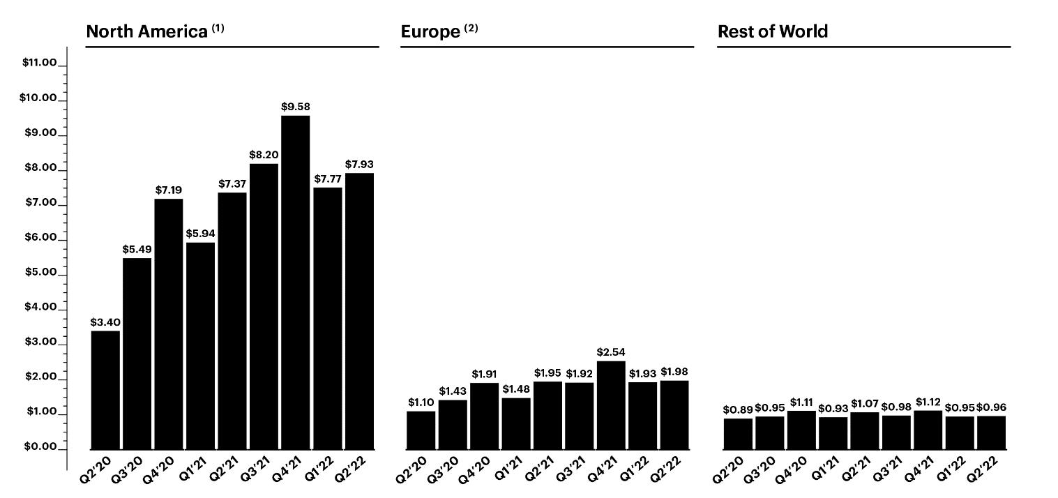 We define a Daily Active User, or DAU, as a registered Snapchat user who opens the Snapchat application at least once during a defined 24-hour period. We calculate average DAUs for a particular quarter by adding the number of DAUs on each day of that quarter and dividing that sum by the number of days in that quarter. DAUs are broken out by geography because markets have different characteristics. We define average revenue per user, or ARPU, as quarterly revenue divided by the average DAUs. For purposes of calculating ARPU, revenue by user geography is apportioned to each region based on our determination of the geographic location in which advertising impressions are delivered, as this approximates revenue based on user activity. This allocation differs from our components of revenue disclosure in the notes to our consolidated financial statements, where revenue is based on the billing address of the advertising customer. For information concerning these metrics as measured by us, see “Management’s Discussion and Analysis of Financial Condition and Results of Operations.”