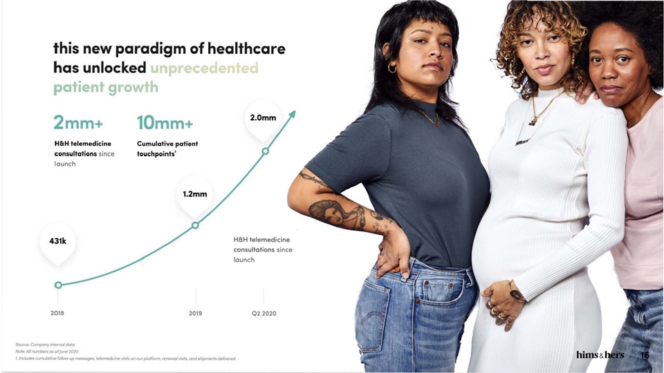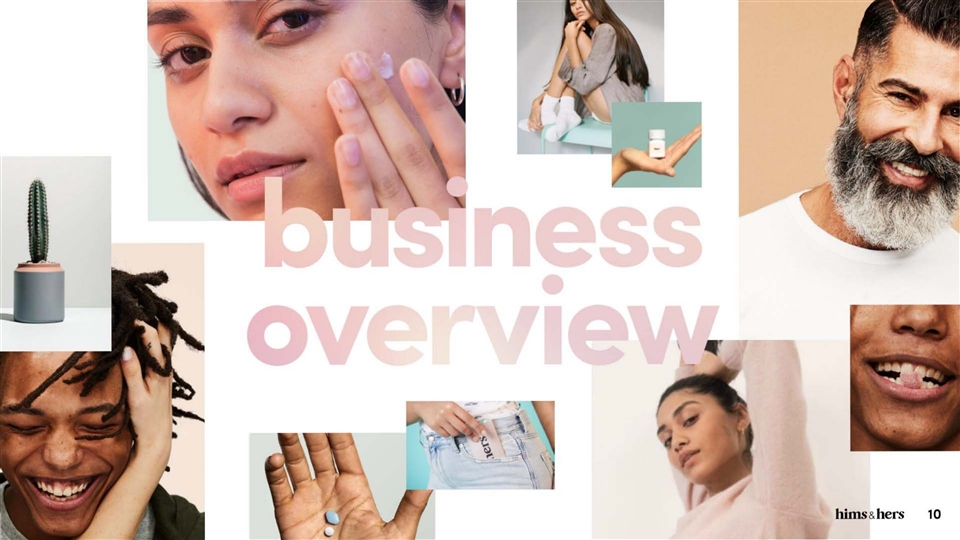 this is the new front door to healthcare-where the patient is our consumer and the experience is frictionless hims& hers t Fast& Comprehensive Ubiquitous Stigma Personalized & Affordable Efficient Access Free for You average patient primary care visit on 24/7 access safe and comfortable potential for greater consultation our platform is $39 vs. nationwide so experience that our personalization and submission within one average cost of everyone can get the patients feel (often first improved outcomes by 2 hour vs. average of 24 $200-300 to visit a care they need time buyers) a fully digital platform days for traditional doctor in-person 1 appointment hims&hers 13 1. Merrill Hawkins: 2017 Survey of Physician Appointment Wait Times and Medicare and Medicaid Acceptance Rates; 2. Medical Expenditure Panel Survey this is the new front door to healthcare-where the patient is our consumer and the experience is frictionless hims& hers t Fast& Comprehensive Ubiquitous Stigma Personalized & Affordable Efficient Access Free for You average patient primary care visit on 24/7 access safe and comfortable potential for greater consultation our platform is $39 vs. nationwide so experience that our personalization and submission within one average cost of everyone can get the patients feel (often first improved outcomes by 2 hour vs. average of 24 $200-300 to visit a care they need time buyers) a fully digital platform days for traditional doctor in-person 1 appointment hims&hers 13 1. Merrill Hawkins: 2017 Survey of Physician Appointment Wait Times and Medicare and Medicaid Acceptance Rates; 2. Medical Expenditure Panel Survey